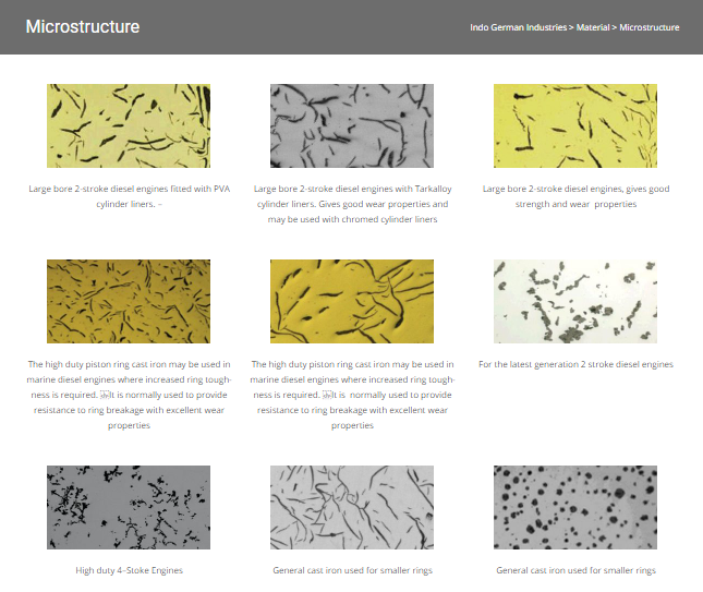 The high duty piston ring cast iron may be used in marine diesel engines where increased ring toughness is required. It is normally used to provide. http://indogermanind.com/graded-casting/microstructure/
