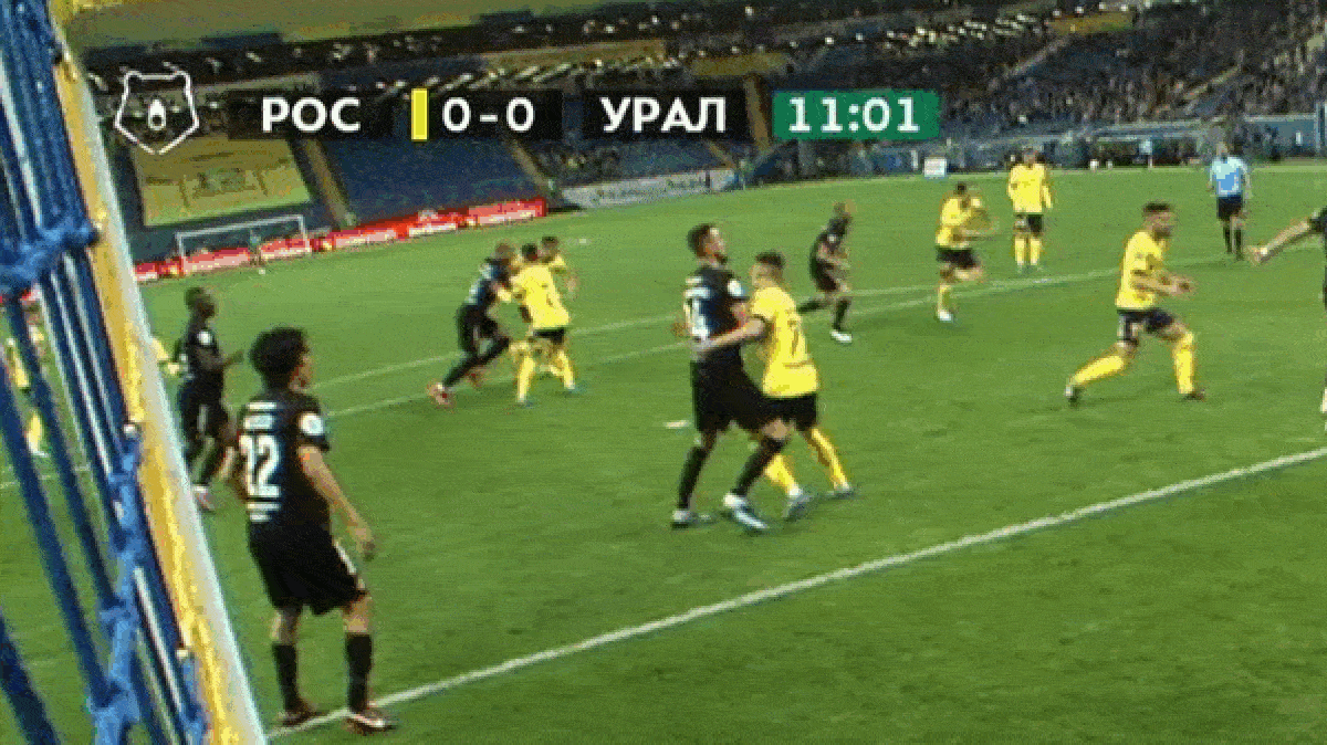 10мин счет 0-0. При подаче углового удара Мельников(Ростов) обхватывает Филипенко руками и выталкивает его с занимаемой позиции. В ответ Филипенко начинает вытягивать руку и ладонью давить на лицо Мельникова.