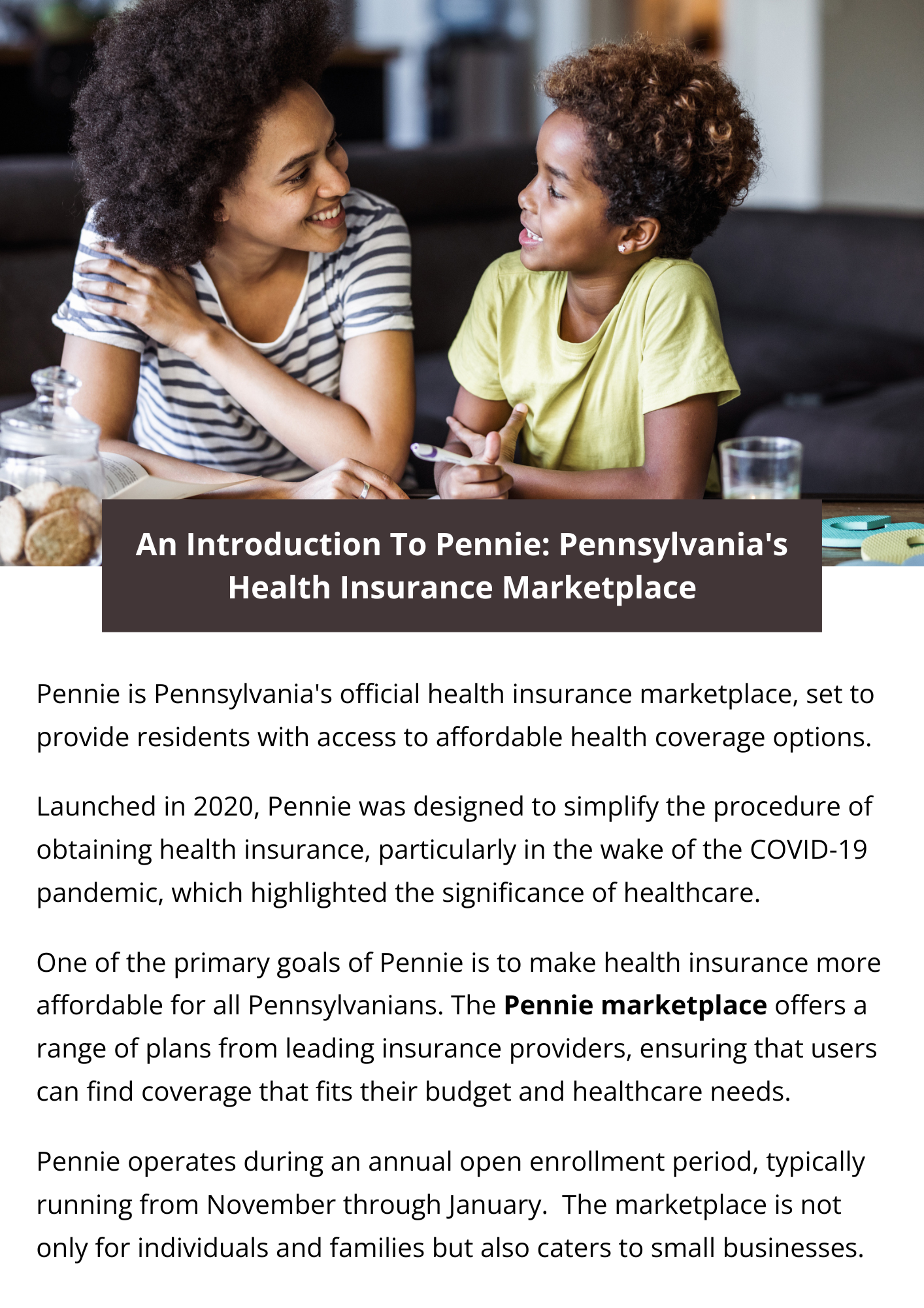 Pennie is Pennsylvania's official health insurance marketplace, offering residents access to affordable health coverage options under the Affordable Care Act. Launched in 2020, it provides a user-friendly platform for comparing and enrolling in various insurance plans. Pennie aims to increase accessibility, with financial assistance available for eligible individuals and families, ensuring that all Pennsylvanians can secure the healthcare they need. To know more visit here https://www.capbluecross.com/wps/portal/cap/home/shop/individual/what-is-pennie
