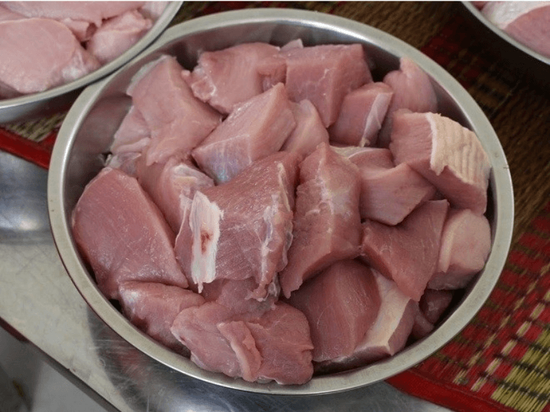 Sơ chế và chia thịt thành miếng nhỏ
