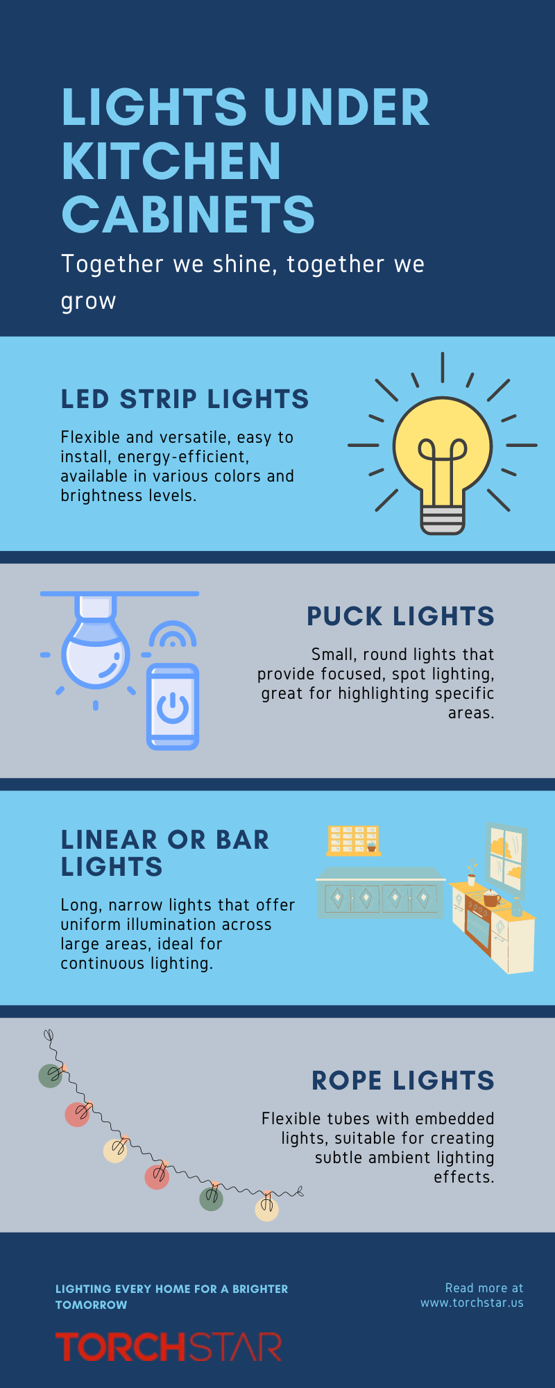 What are you waiting for? Buy LED under kitchen cabinets right away! TORCHSTAR is here to make this happen for you! Visit us at https://torchstar.us/collections/residential-cabinet-lights