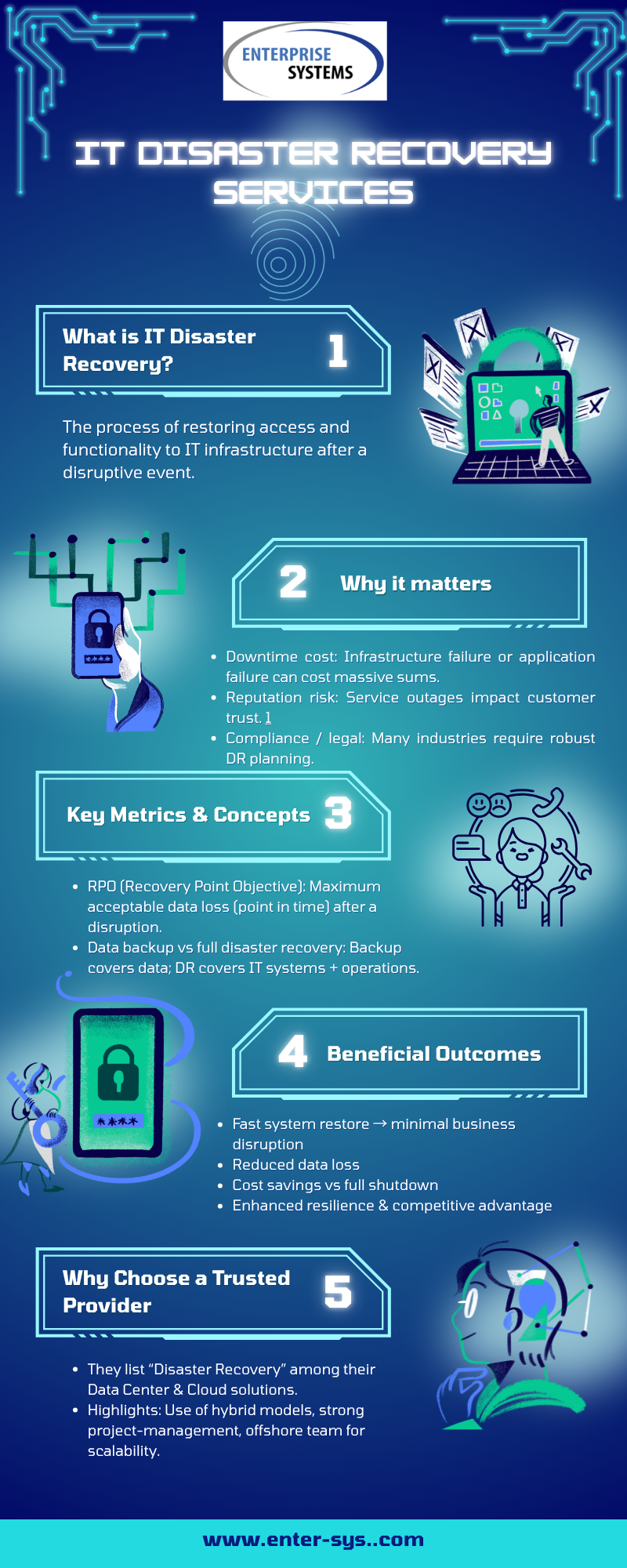 Protect your business from downtime and data loss with Enterprise Systems Corporation’s IT Disaster Recovery Services. We help companies recover quickly from cyberattacks, hardware failures, and system outages. Our services include risk assessment, data backup, cloud recovery, and disaster planning to keep your operations running smoothly. With our expert team and proven strategies, you can minimize disruption, reduce costs, and ensure business continuity. Stay resilient and safeguard your IT infrastructure with our trusted recovery solutions.