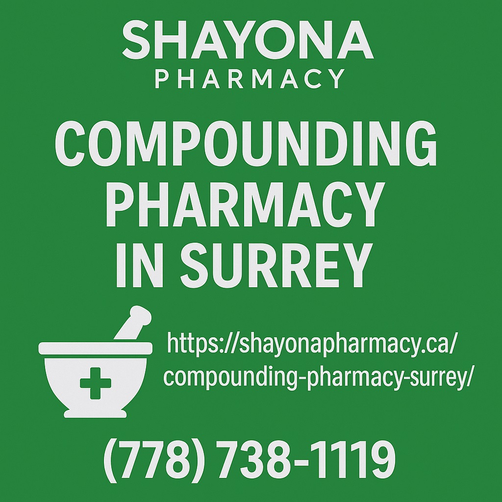 Shayona Pharmacy is your trusted compounding pharmacy in Surrey, offering personalized medications tailored to your specific health needs. Visit our website https://shayonapharmacy.ca/compounding-pharmacy-surrey/ or call (778) 738-1119 to speak with our compounding specialists. Your health deserves personal attention — contact Shayona Pharmacy today!