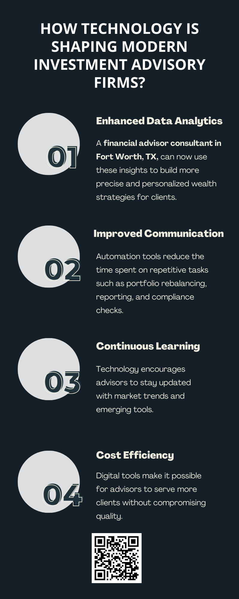 Technology is transforming modern investment advisory firms by enabling data-driven decisions, automation, personalized strategies, and improved client communication. Advanced tools allow advisors to monitor portfolios, manage risks, and optimize performance efficiently. Partnering with a financial advisor consultant in Fort Worth TX ensures clients benefit from innovative solutions while receiving expert guidance for long-term financial growth. To know more visit here https://www.alignedwealthadv.com/