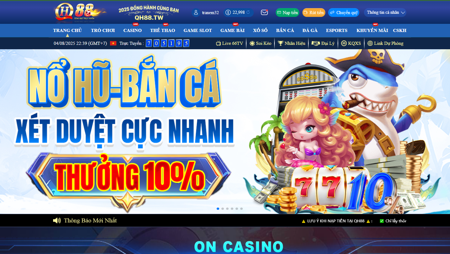 QH88 là nhà cái hàng đầu hiện nay, chuyên đáp ứng nhu cầu giải trí của con người. Tại đây cung cấp hàng nghìn trò chơi từ cổ điển đến mới lạ, khiến mỗi giờ phút cá cược của game thủ đều vui vẻ, thoải mái.