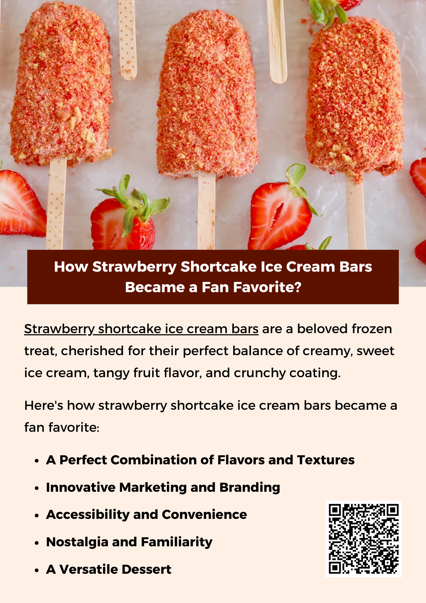Strawberry shortcake ice cream bars have earned their place as a fan favorite by offering a unique combination of creamy, fruity, and crunchy elements that delight the senses. Their nostalgic appeal, convenience, and connection to happy memories make them a go-to treat for many. The clever marketing, accessibility, and versatility of the bars have ensured their continued popularity for decades. To know more visit here https://cravnflavor.com/product/cravn-flavor-strawberry-shortcake-ice-cream-crunch-bars-6-ea/