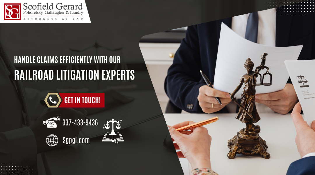Protect your company’s interests with an experienced railroad litigation defense attorney in Lake Charles Louisiana. We defend against personal injury claims, regulatory issues, and commercial disputes. At Scofield, Gerard, Pohorelsky, Gallaugher & Landry, LLC, our expert team understands the nuances of railroad law and provides aggressive, knowledgeable representation. Call us today!
