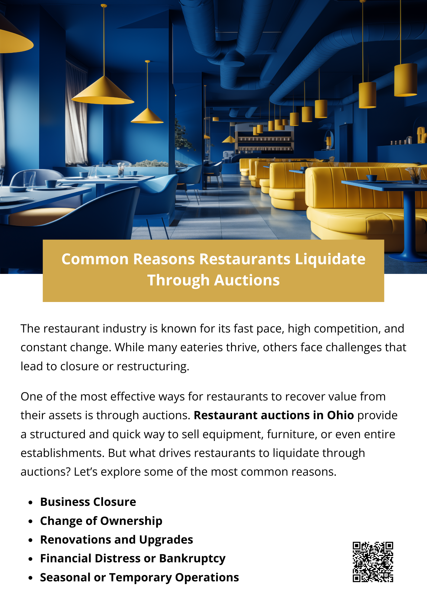 Restaurant auctions in Ohio aren’t always a sign of failure—they’re often a smart business decision. Whether it’s recovering costs from closure, making room for upgrades, or adjusting to new trends, auctions help owners maximize value while giving buyers access to affordable, high-quality equipment. In an industry where every dollar counts, auctions are a practical solution for both sides. To know more visit here https://www.wyethauctions.com/industries/food-service-restaurant-equipment