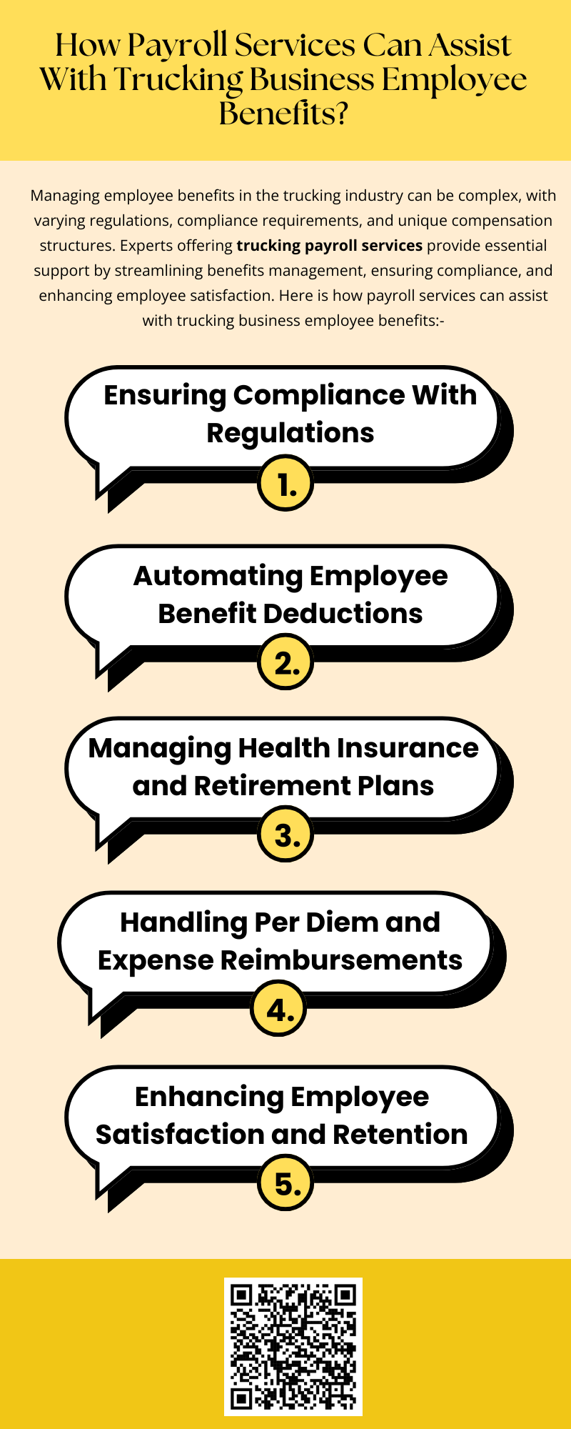 Payroll services play a crucial role in managing employee benefits for trucking companies. From ensuring compliance and automating deductions to managing health insurance and retirement plans, these services streamline operations and reduce administrative burdens. By partnering with experts offering trucking payroll services, businesses can provide competitive benefits packages, improve employee satisfaction, and focus on growth while maintaining compliance with industry regulations. To know more visit here https://www.truckersprocpa.ca/trucking-payroll-services