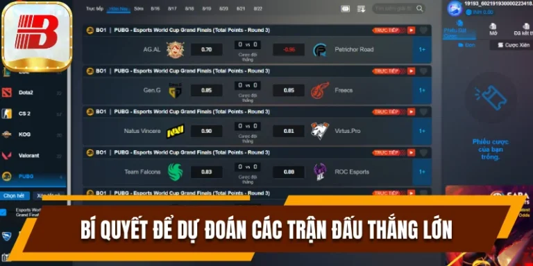 Chọn thời điểm cá cược là một yếu tố quan trọng khi tham gia giải đấu PUBG tại BSport. Bạn không nên đặt cược ngay lập tức khi trận đấu bắt đầu, mà hãy quan sát một chút về diễn biến trận đấu để đưa ra quyết định tốt nhất. Những kèo cược trực tiếp thường thay đổi nhanh chóng, và bạn cần tận dụng thời gian để đưa ra quyết định chính xác.