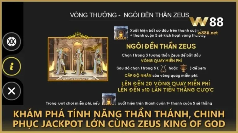 Zeus King Of God W88 đưa người chơi vào trận chiến huyền thoại.