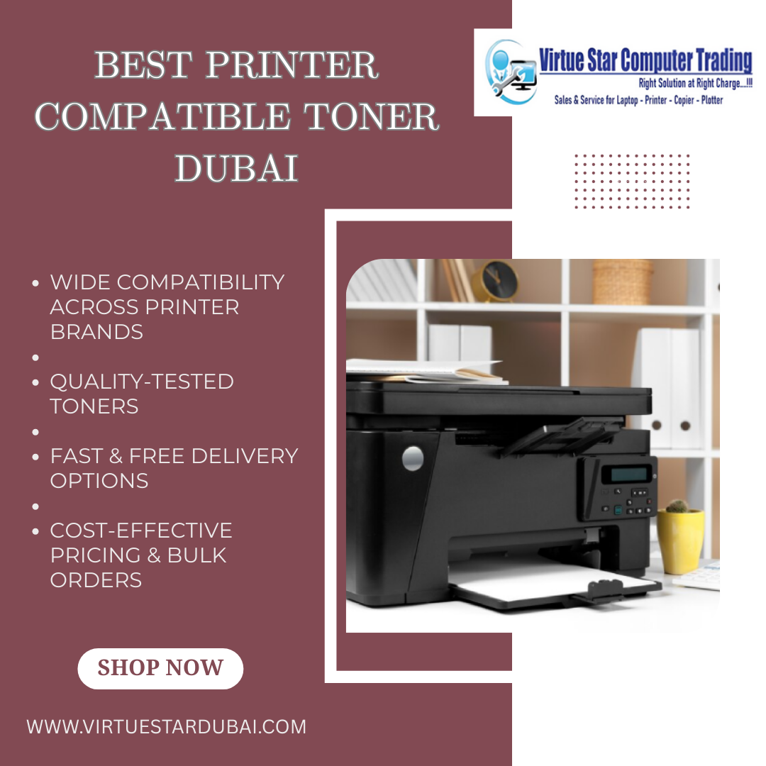 Discover high-quality printer compatible toner Dubai by Virtue Star, offering reliable cartridges for HP, Canon, Epson, Brother & more. Get fast delivery, competitive prices, and tested performance that rivals original toners. Whether you need bulk office supplies or single cartridges, Virtue Star guarantees exceptional print quality, expert support, and satisfaction you can trust. Order now for seamless printing solutions in Dubai.